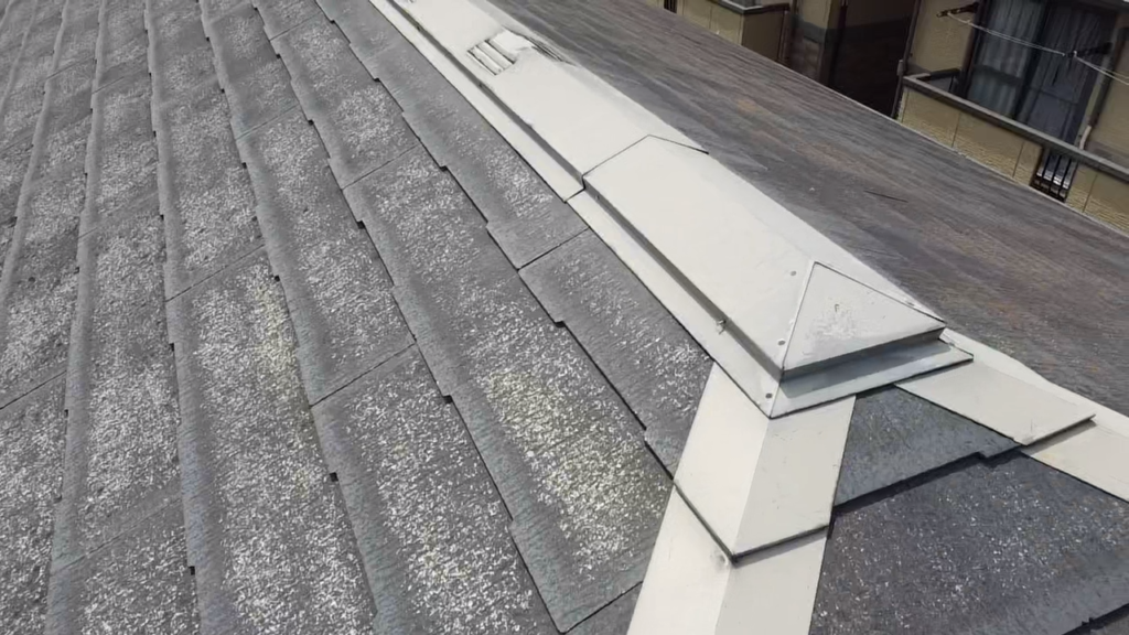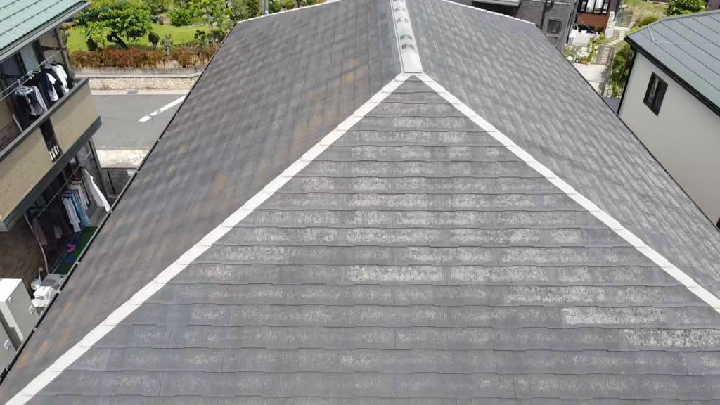 HPからお問い合わせいただきました。経年劣化に伴う汚れが目立ちチョーキング現象やパッキン部の剥がれ、部分的なコーキングの割れが目立ちました。付帯部のに関しましても、紫外線による劣化でだいぶ弱くなっていました。屋根に関しましては、瓦の割れなどは見当たりませんでしたが、板金部・瓦共に経年劣化に伴う雨・風の汚れなどが目立ちました。