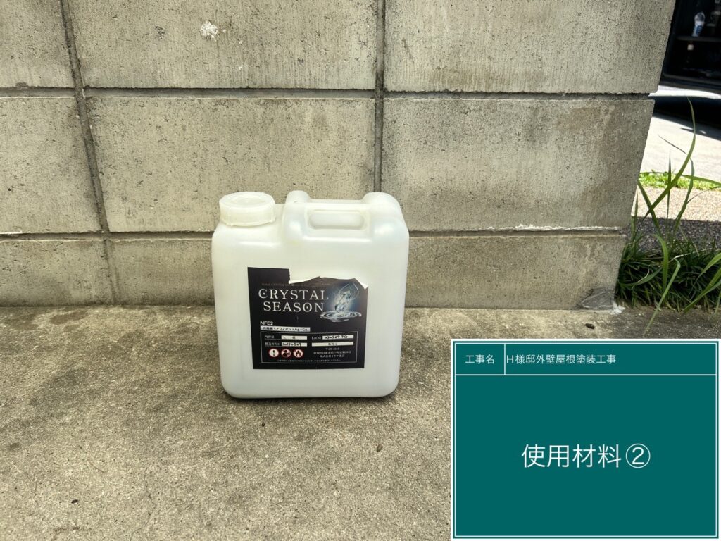 お客様のご要望として、次回の塗装までに長く綺麗さを保ちたいということでしたので、屋根・壁ともに、高耐久性と美観性の優れた無機エクスカリバーでご提案させて頂きました。こちらの塗料は公表されている無機含有率の高さで、高耐久性は勿論の事、美観性も維持してくれる塗料となります。また美観性を底上げしてくれる仕上げ材として、弊社の取り扱っているクリスタルシーズンという光触媒コーティングのご提案もさせて頂きました。こちらは塗料仕上げ剤として最後の工程に外壁や付帯部、などお家全体に吹付けるコーティング材となります。
