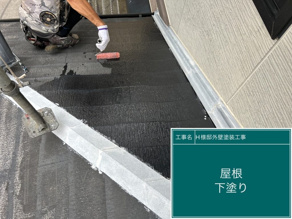 軒天に仕上げ材のクリスタルシーズン®を塗布します。