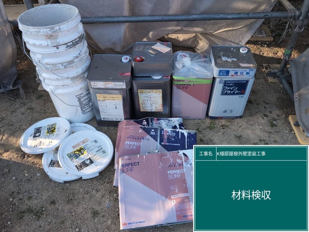 足場解体後、完了立会いをします。使用した材料の確認です。