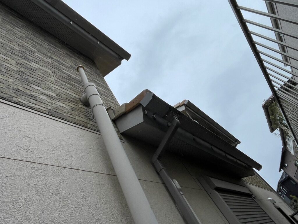 軒樋・竪樋は紫外線による劣化が激しく出ていました。