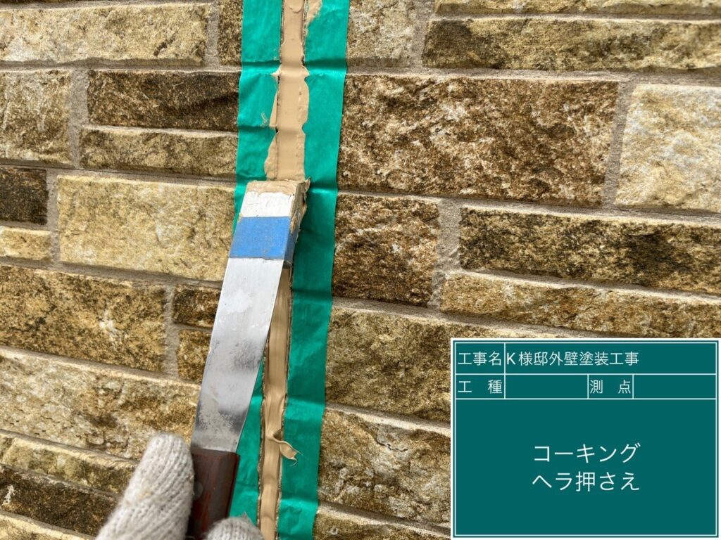コーキング部分は経年劣化によるひび割れが目立ちました。